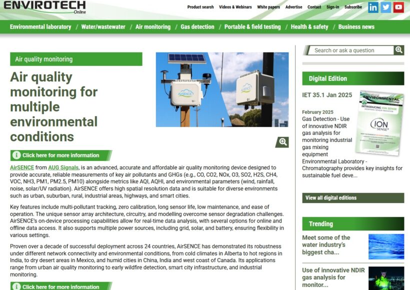 Originating from the renowned interdisciplinary air research centre SOCAAR (Southern Ontario Centre for Atmospheric Aerosol Research) at the University of Toronto, AirSENCE has been developed by A.U.G. Signals Ltd. (AUG) into a technologically advanced continuous monitoring station.