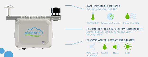 NO, NO2, CO, O3, SO2, PM (PM10, PM2.5 & PM1), temperature, humidity, wind speed and wind direction, with customization upon request.